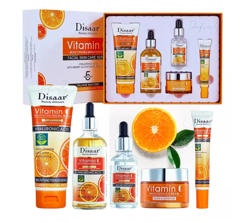 Descubre el poder de la Vitamina C con el kit Skin Care Vitamina C de Disaar. Combate las manchas, hidrata y revitaliza tu piel con este completo kit. Su delicioso aroma a naranja recién exprimida te cautivará.