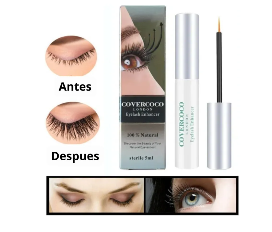 Serum Covercoco London que Acelera el crecimiento de las pestañas, alargando, engrosando y haciendo más tupidas. Irriga la raíz del pelo, logrando que se despierten los pelos que permanecían dormidos sin crecer.